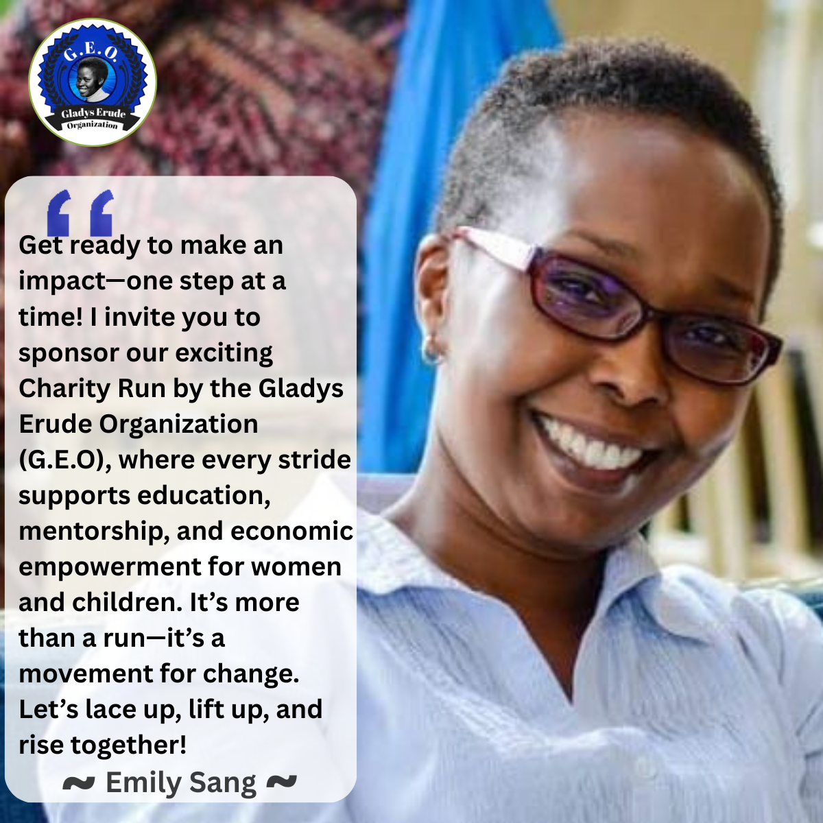 The GEM Run is organized by the Gladys Erude Organization (GEO), a non-profit founded in 2022 and registered in the United States, with an affiliate presence in Kenya. GEO’s initiative aligns with our core mission to empower women and children in underserved communities by providing essential, life-sustaining services.